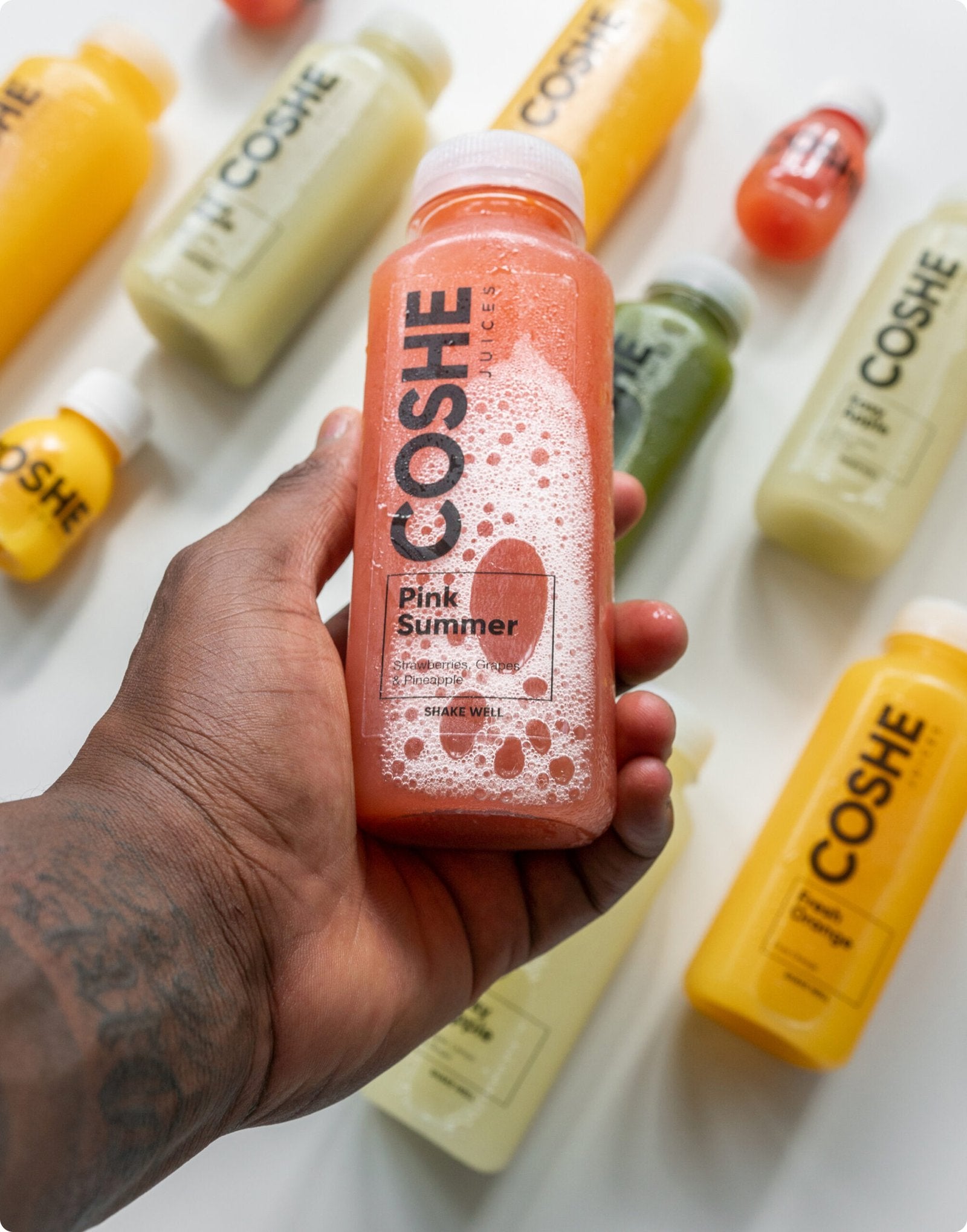 Our name Coshe is an abbreviation of my daughter’s name and is pronounced “co-shh” We are a family brand born in 2016 and inspired by our daughter. We wanted to give her healthy juices but knew what was on the shelves, and marketed as healthy, was crammed with sugars and other ingredients. Giving our daughter these juices wasn’t something that sat right with us so, we started with a blender, like most families do, making smoothies. When we realised that a 2-year-old was consistently enjoying healthy smoothies we thought why not explore this more and create a brand of juices based on what she enjoys? We looked into healthier options other than blending and once we dived into cold pressing and the benefits, the brand was born.